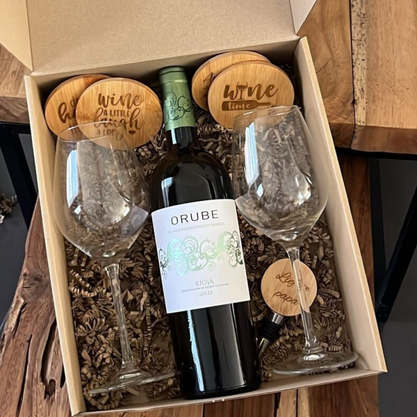 - Fles wijn, wit of rood. (Merk van wijn kan afwijken van de foto)