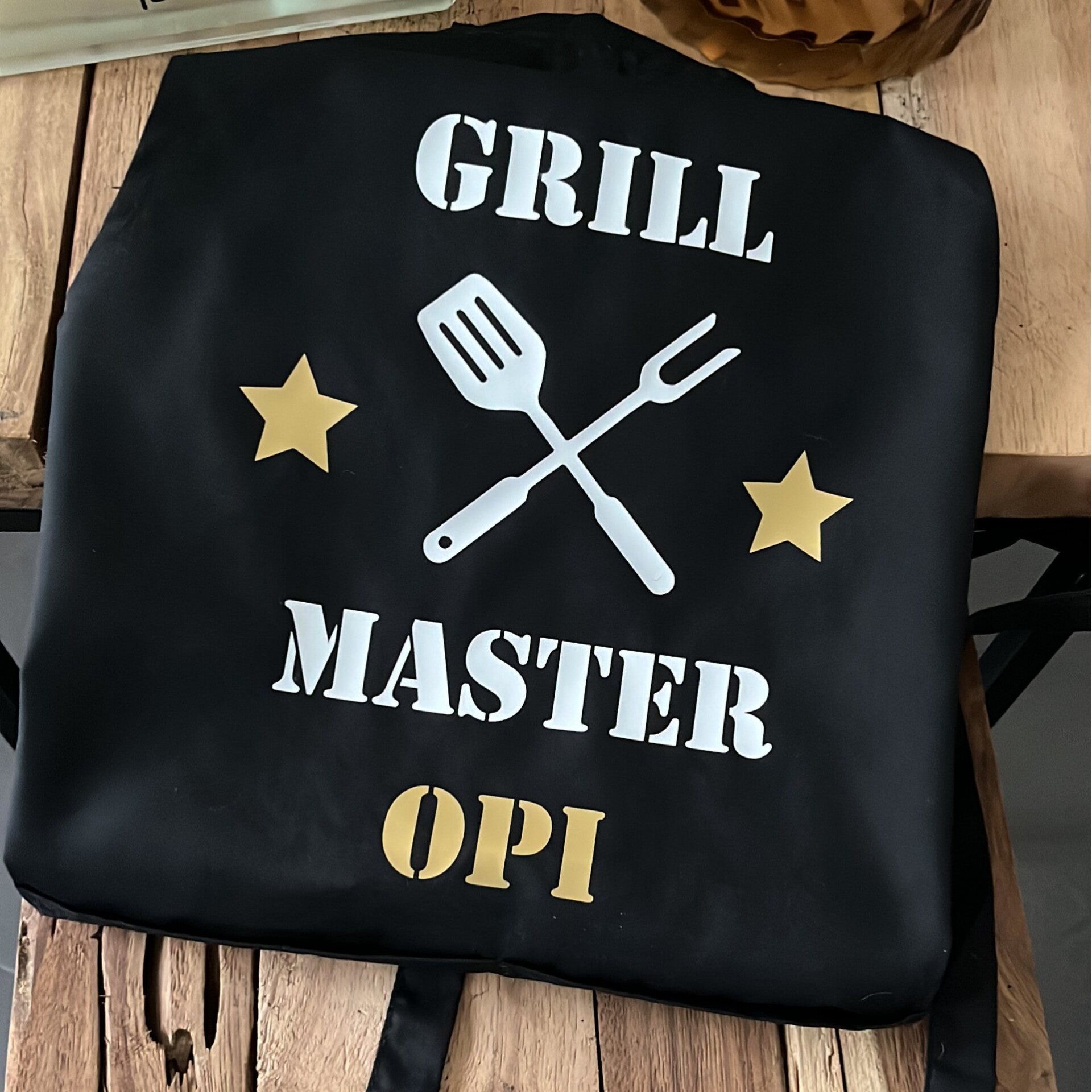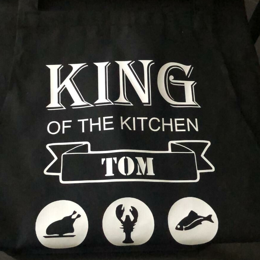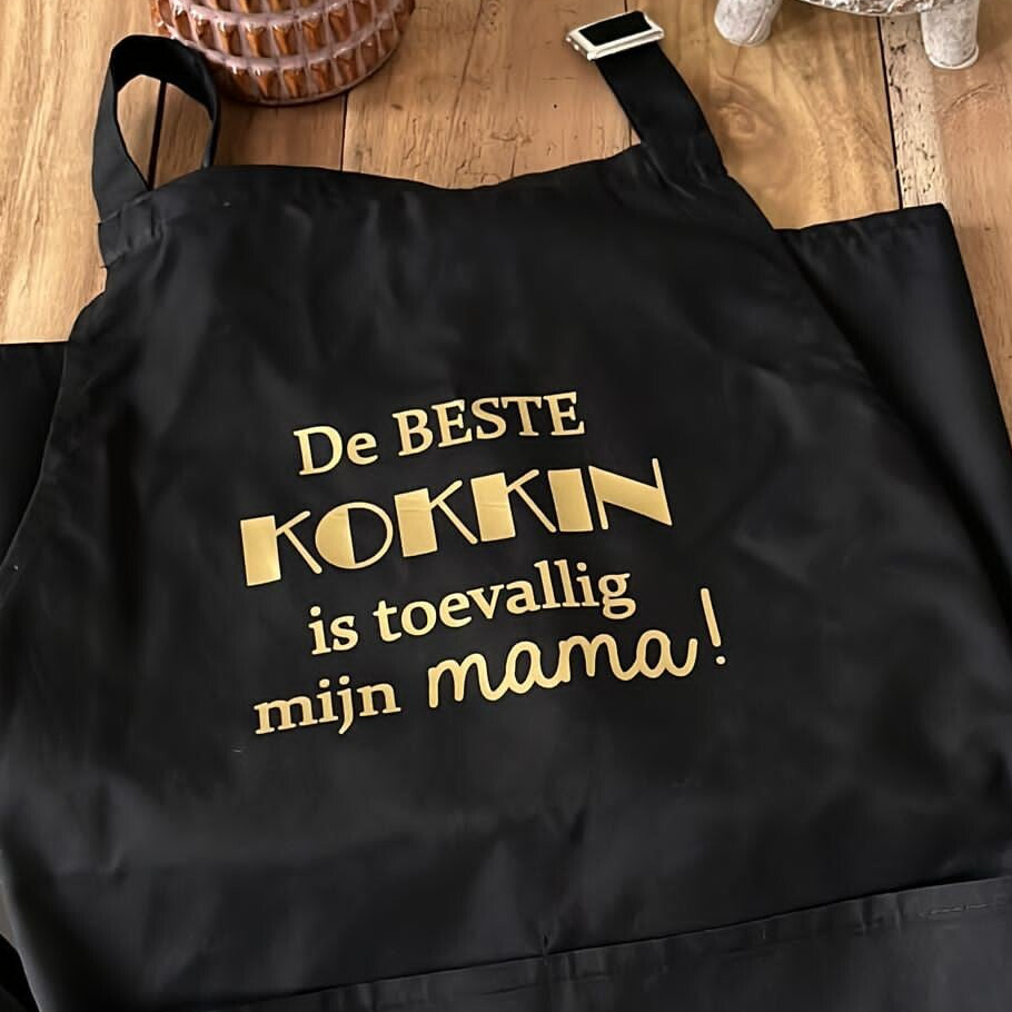Hoogwaardig schort van TC-materiaal - combinatie van katoen en polyester-. Dubbel voorvak en verstelbare nekbanden. Past onder de knie.