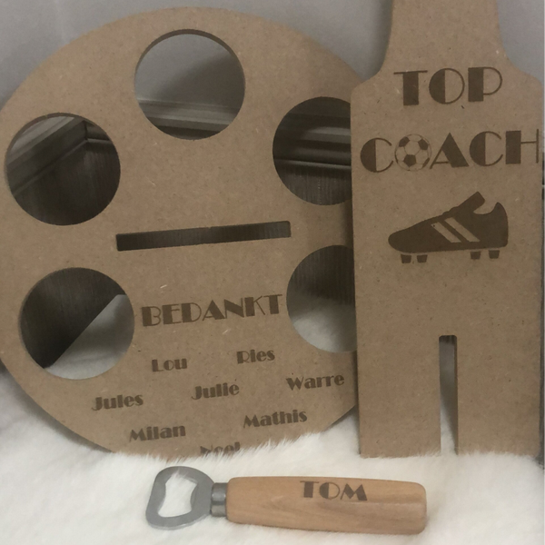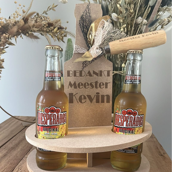 Een leuk origineel cadeau voor een bierliefhebber. Het hout kan gegraveerd worden naar wens.
