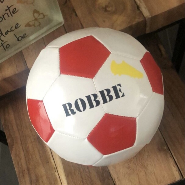 Retro design voetbal van zacht PU-leer en FIFA 5-formaat. Tweekleurig ontwerp met witte zeshoekige panelen en vijfhoekige panelen in gevarieerde kleuren.