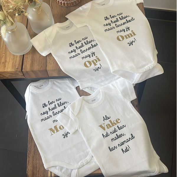 Leuk gepersonaliseerd rompertje, ideaal cadeau om op kraambezoek te gaan.
