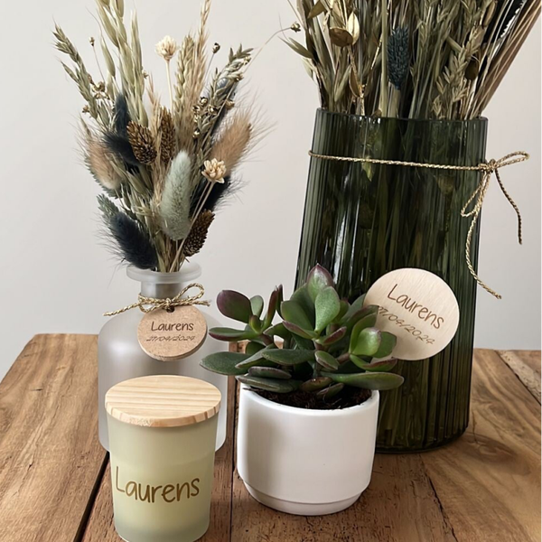 Bloempotje te verkrijgen in het wit of zwart, kan gepersonaliseerd worden.
