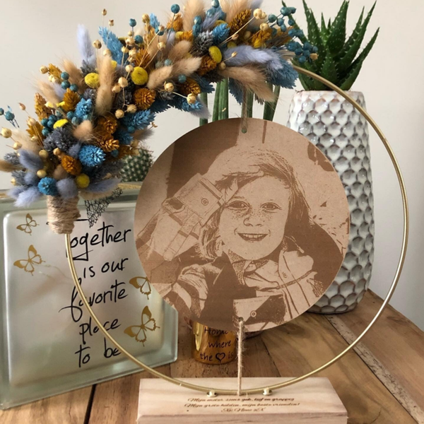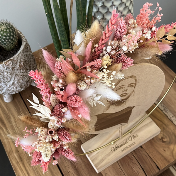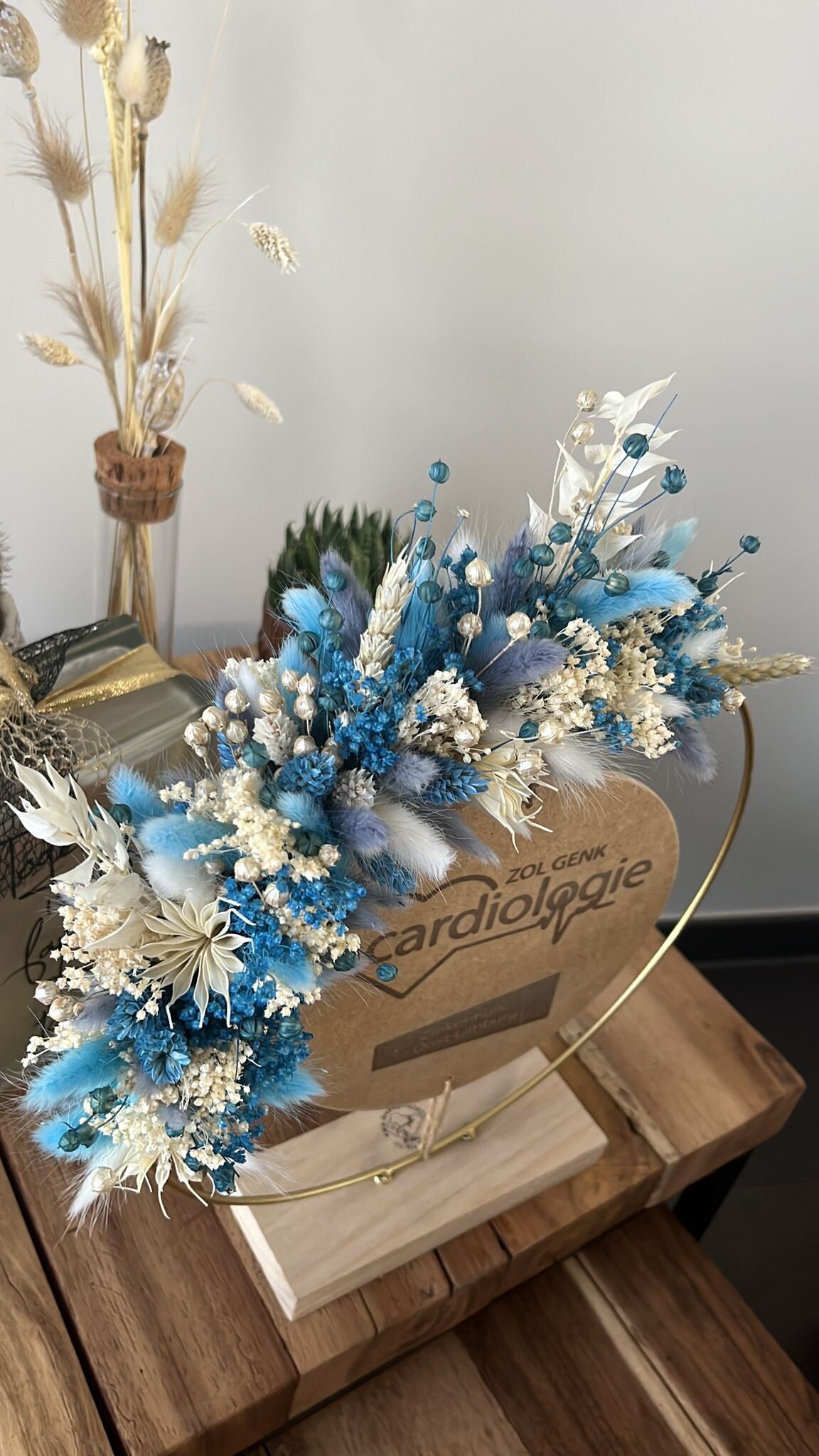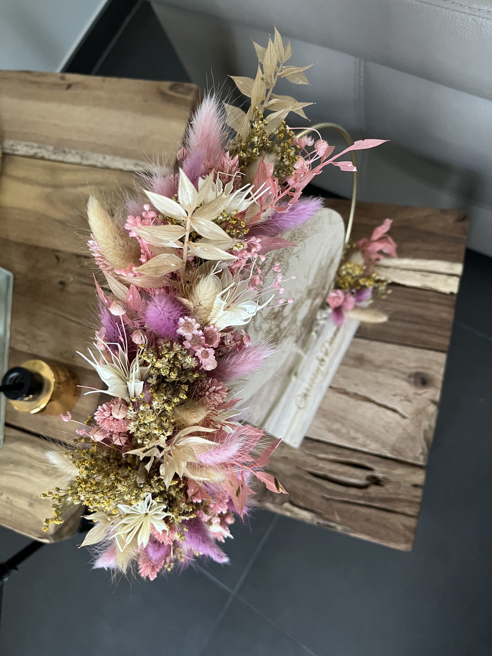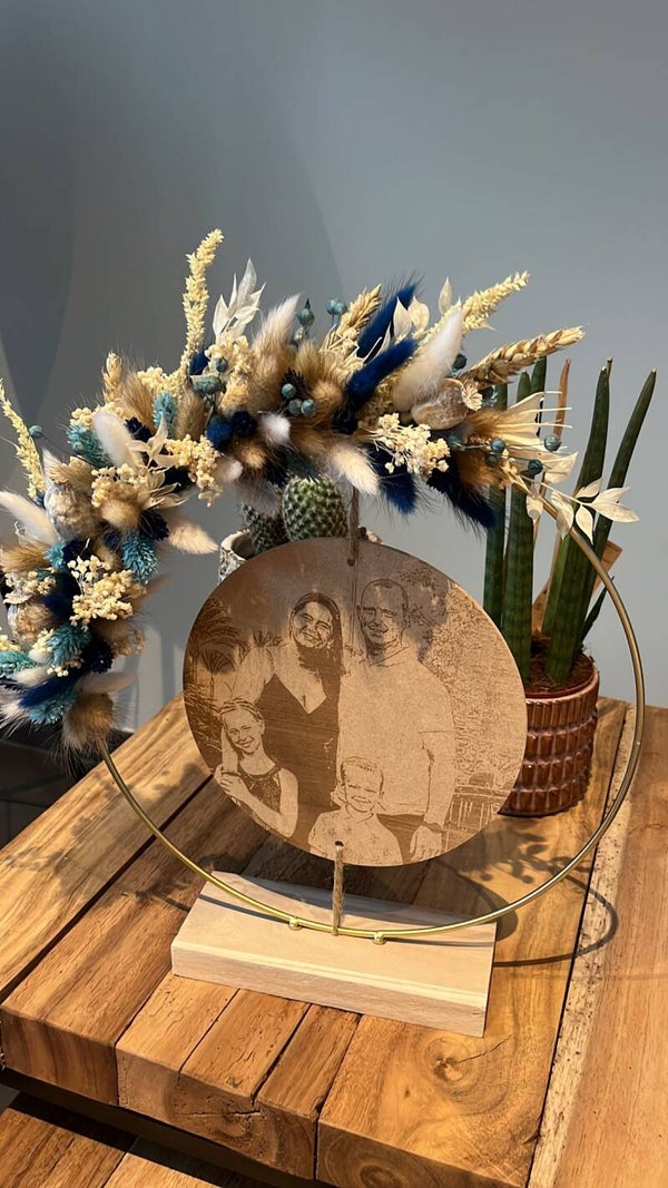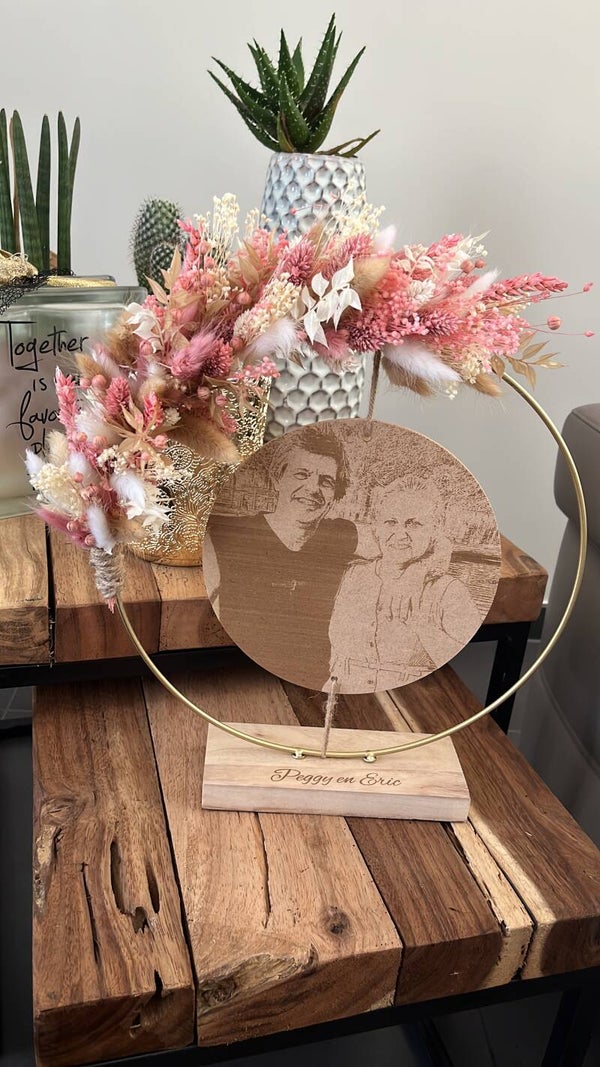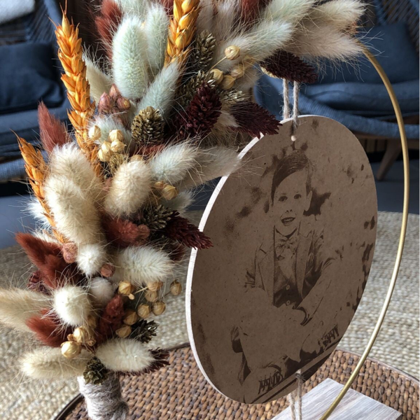 Kies uit de lijst 3 tot 4 kleuren droogbloemen, zo is jouw hoepel volledig naar wens afgewerkt.