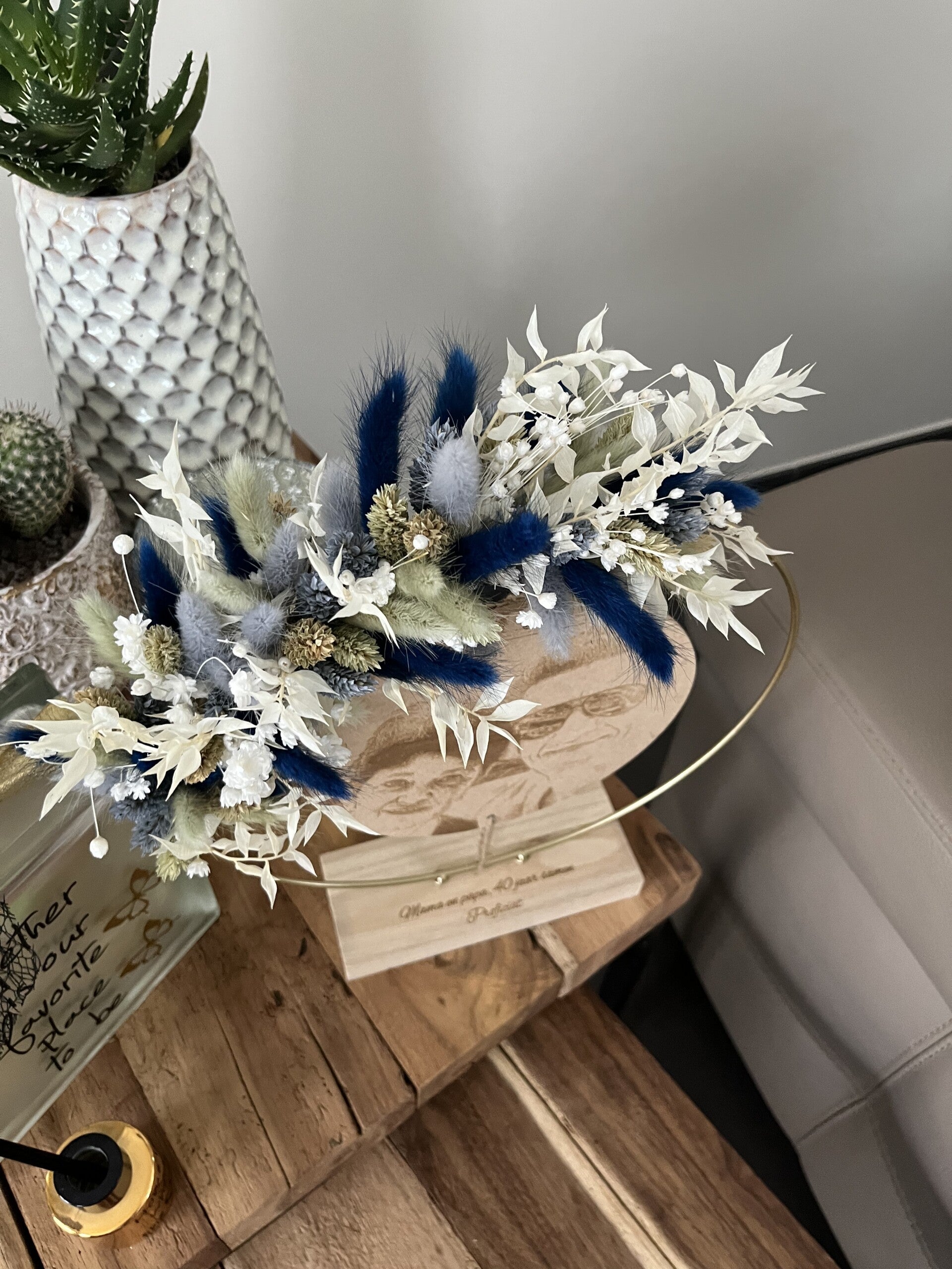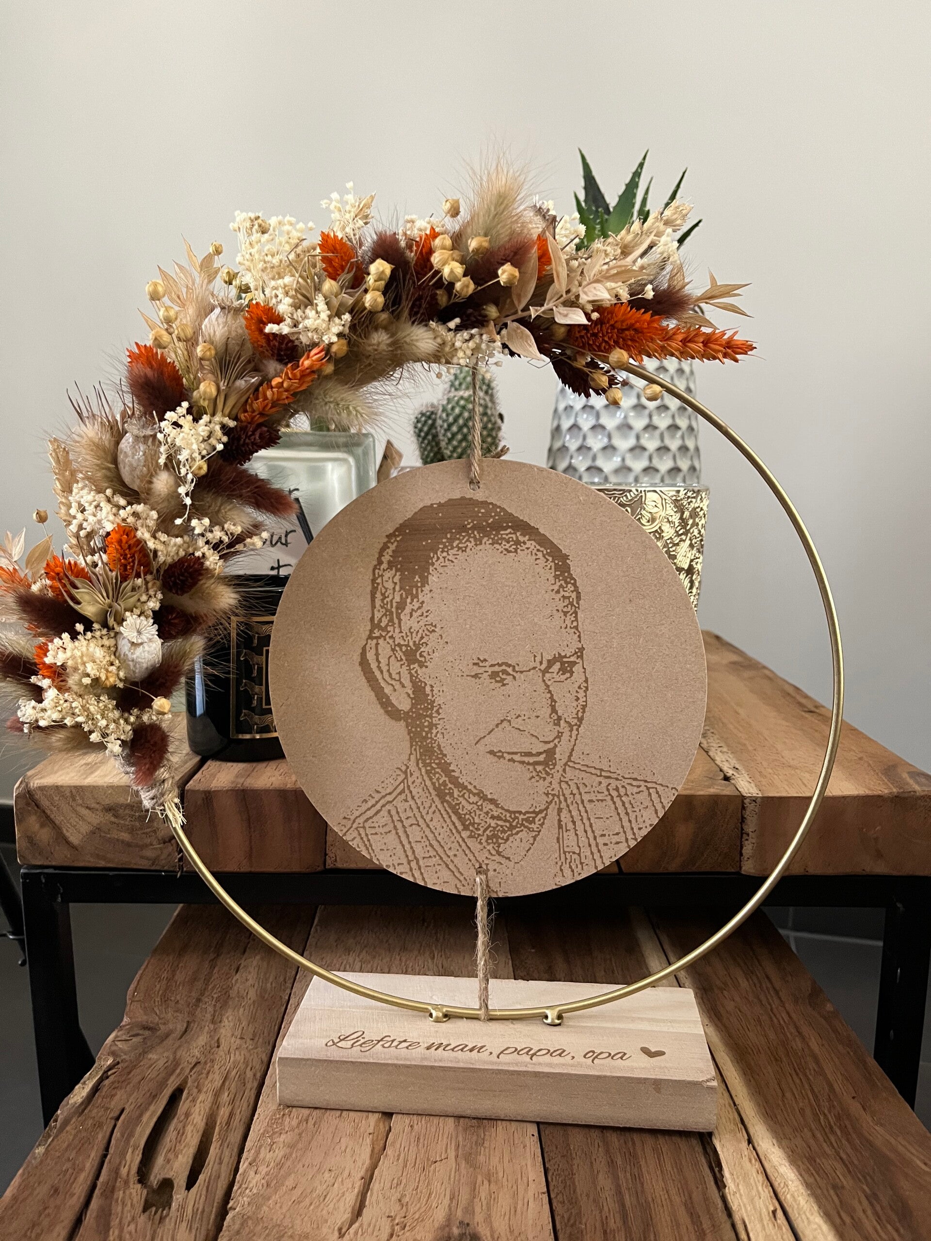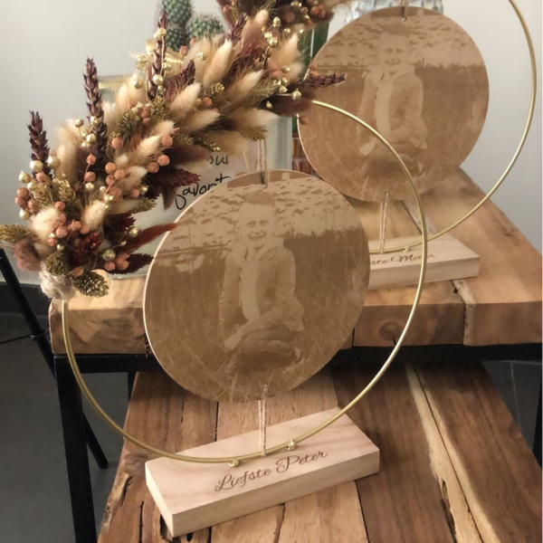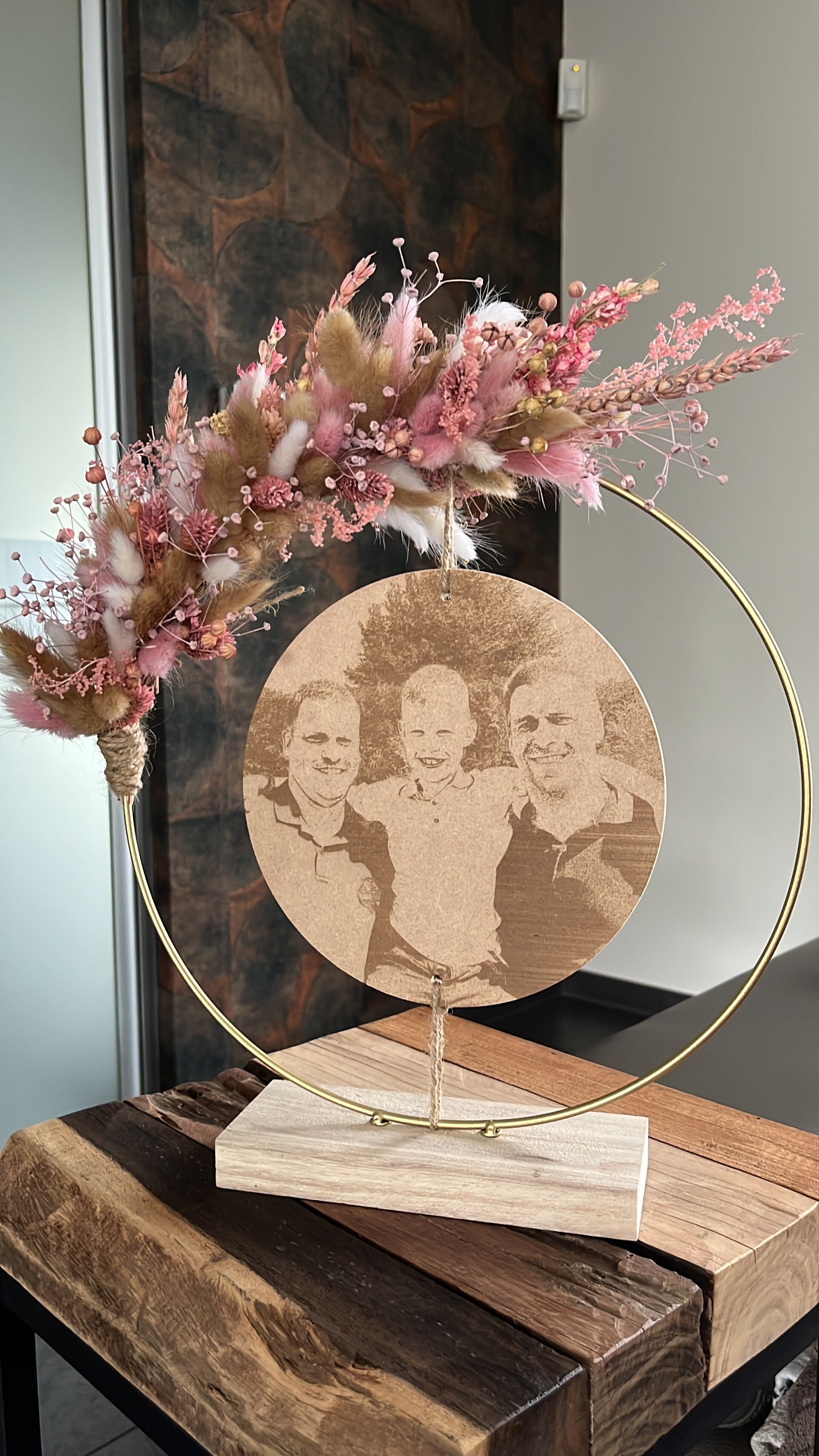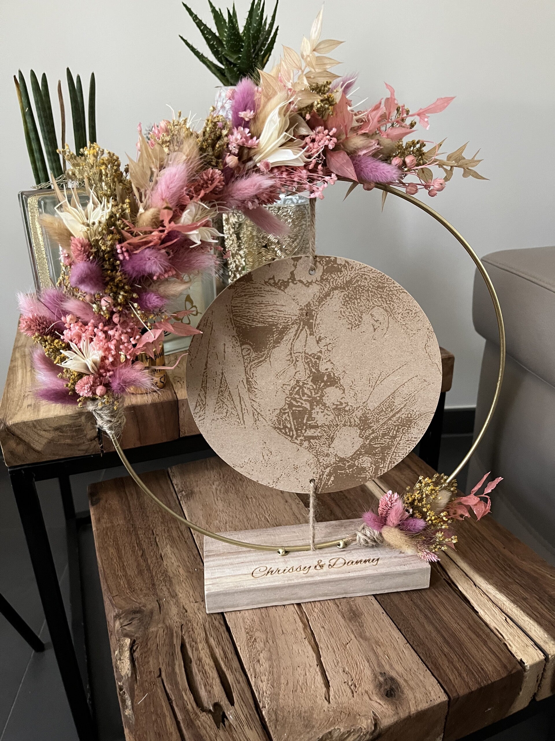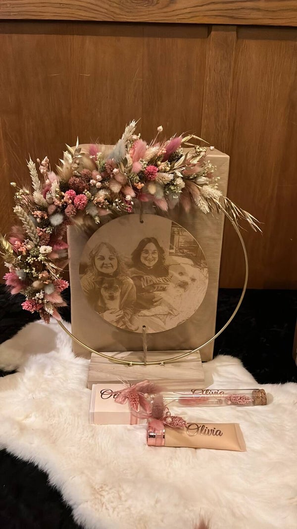 Kies uit de lijst 3 tot 4 kleuren droogbloemen, zo is jouw hoepel volledig naar wens afgewerkt.