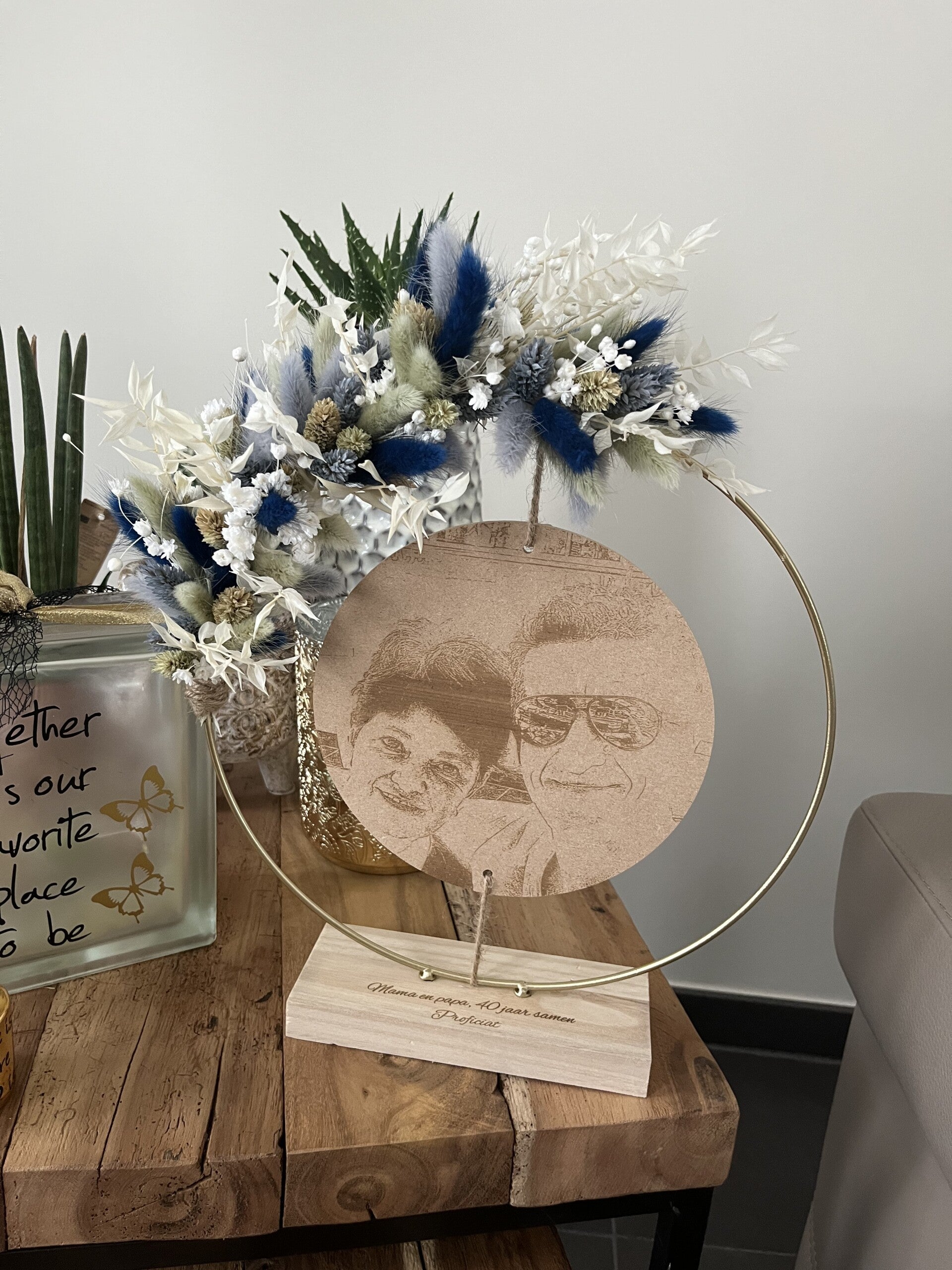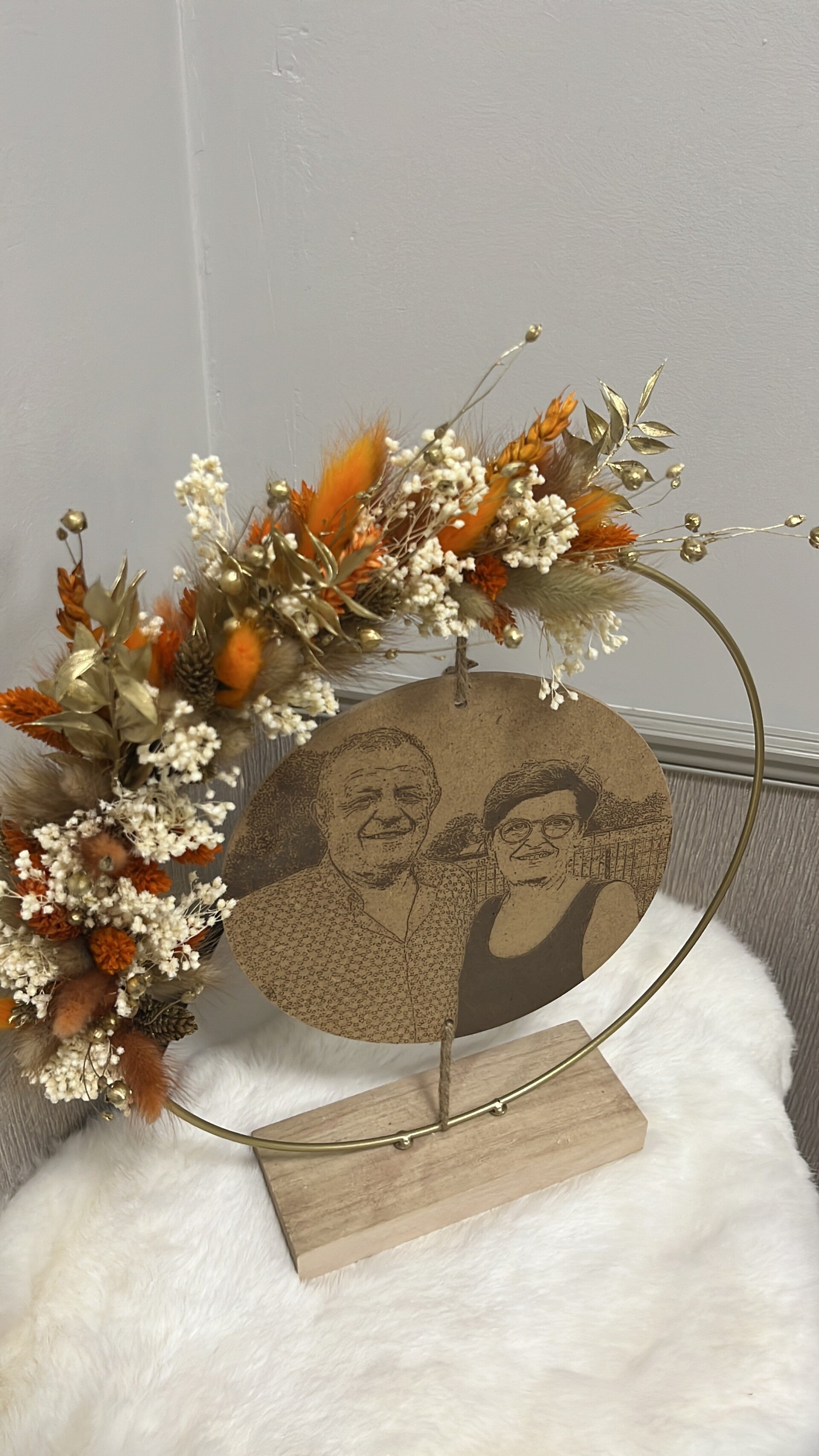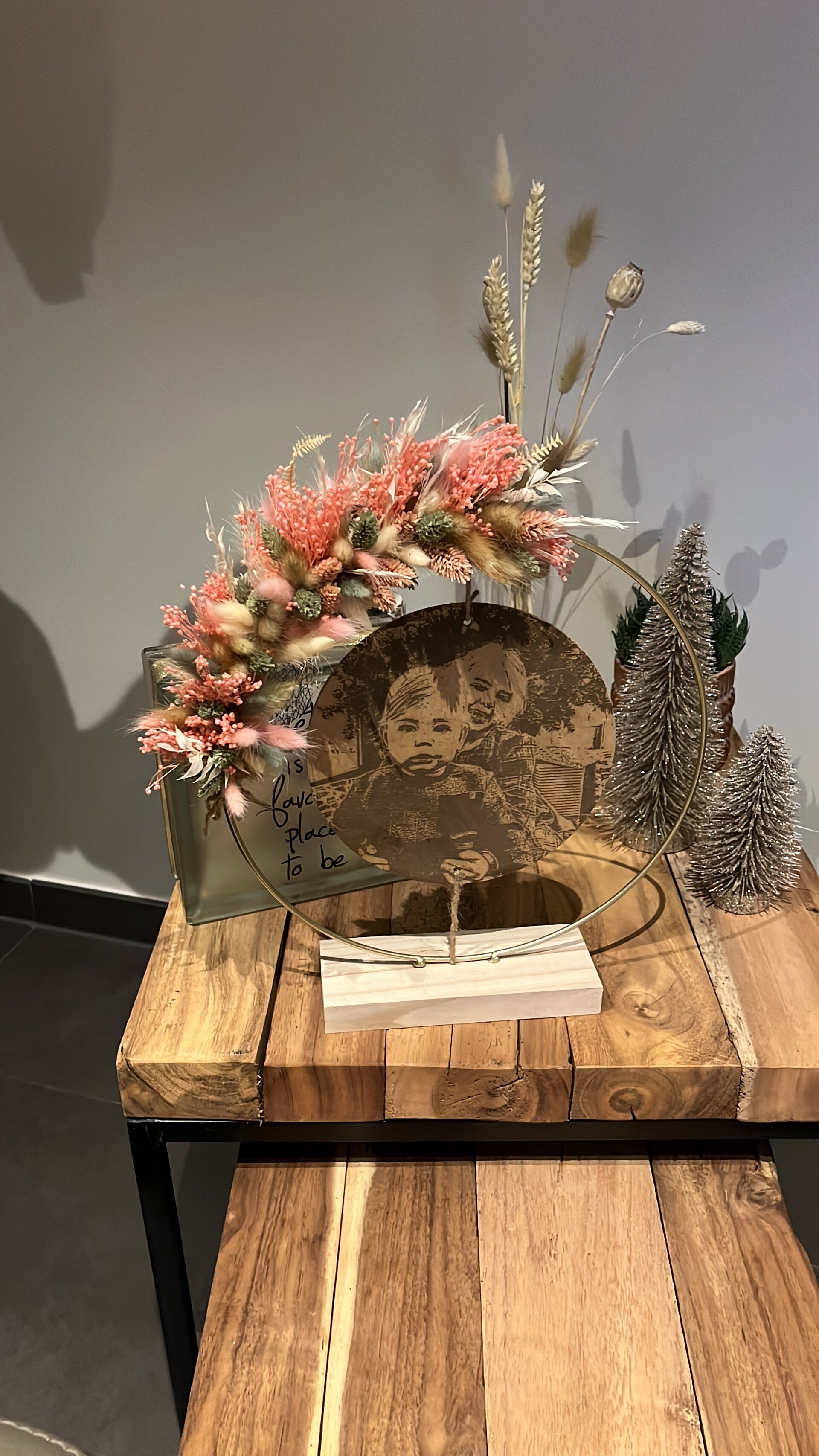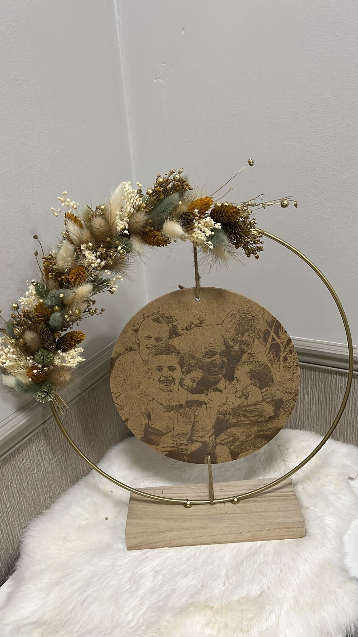 Kies uit de lijst 3 tot 4 kleuren droogbloemen, zo is jouw hoepel volledig naar wens afgewerkt.