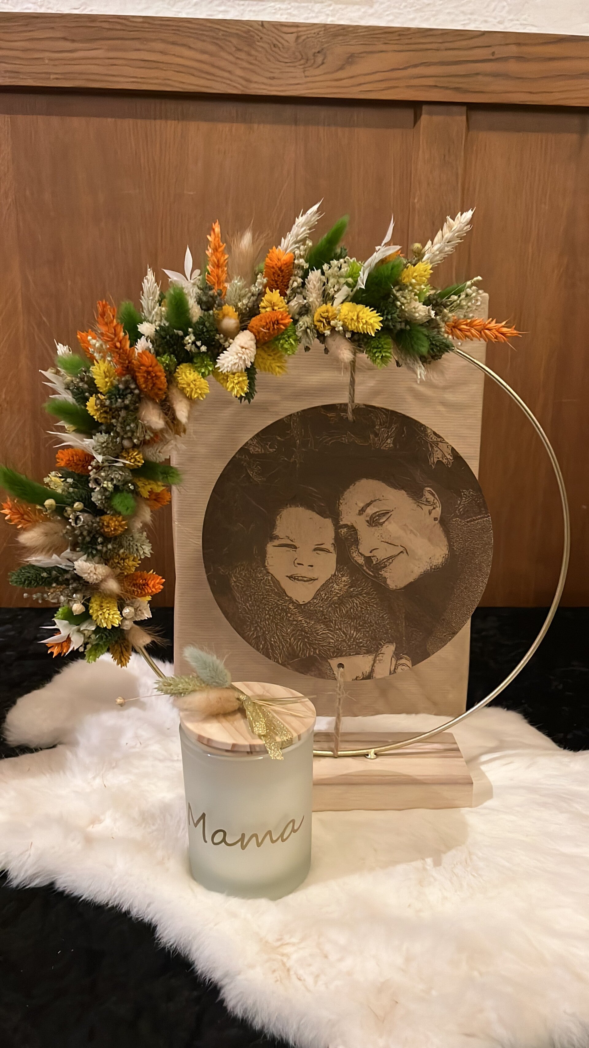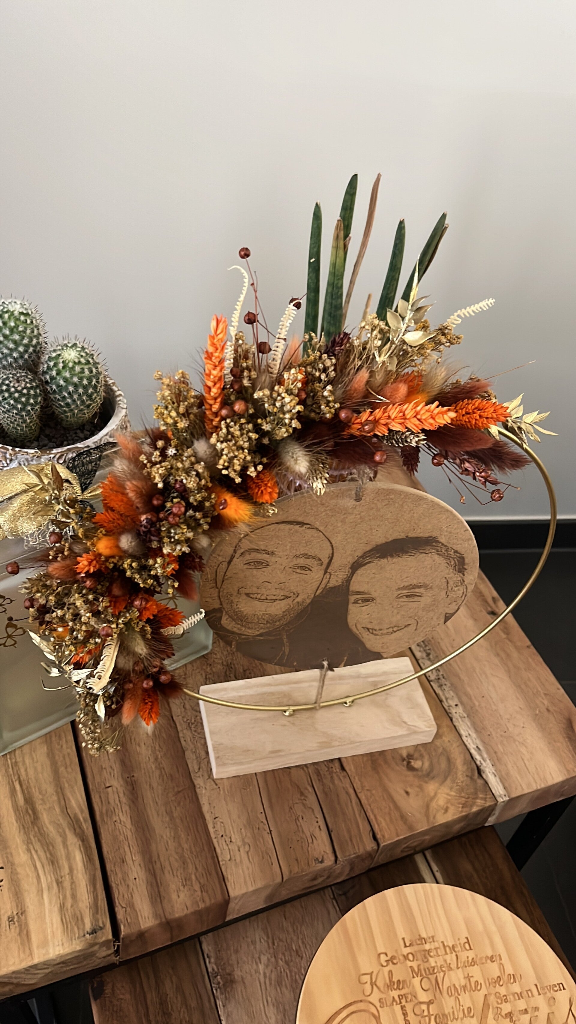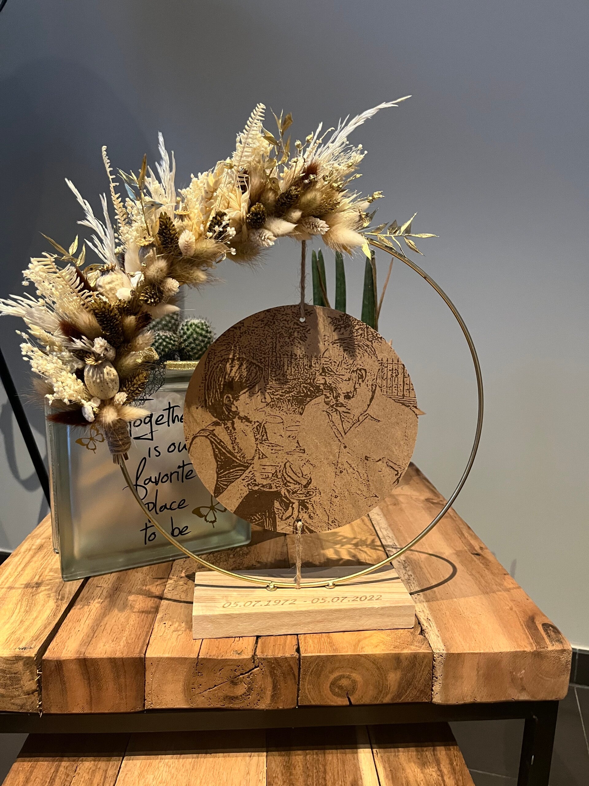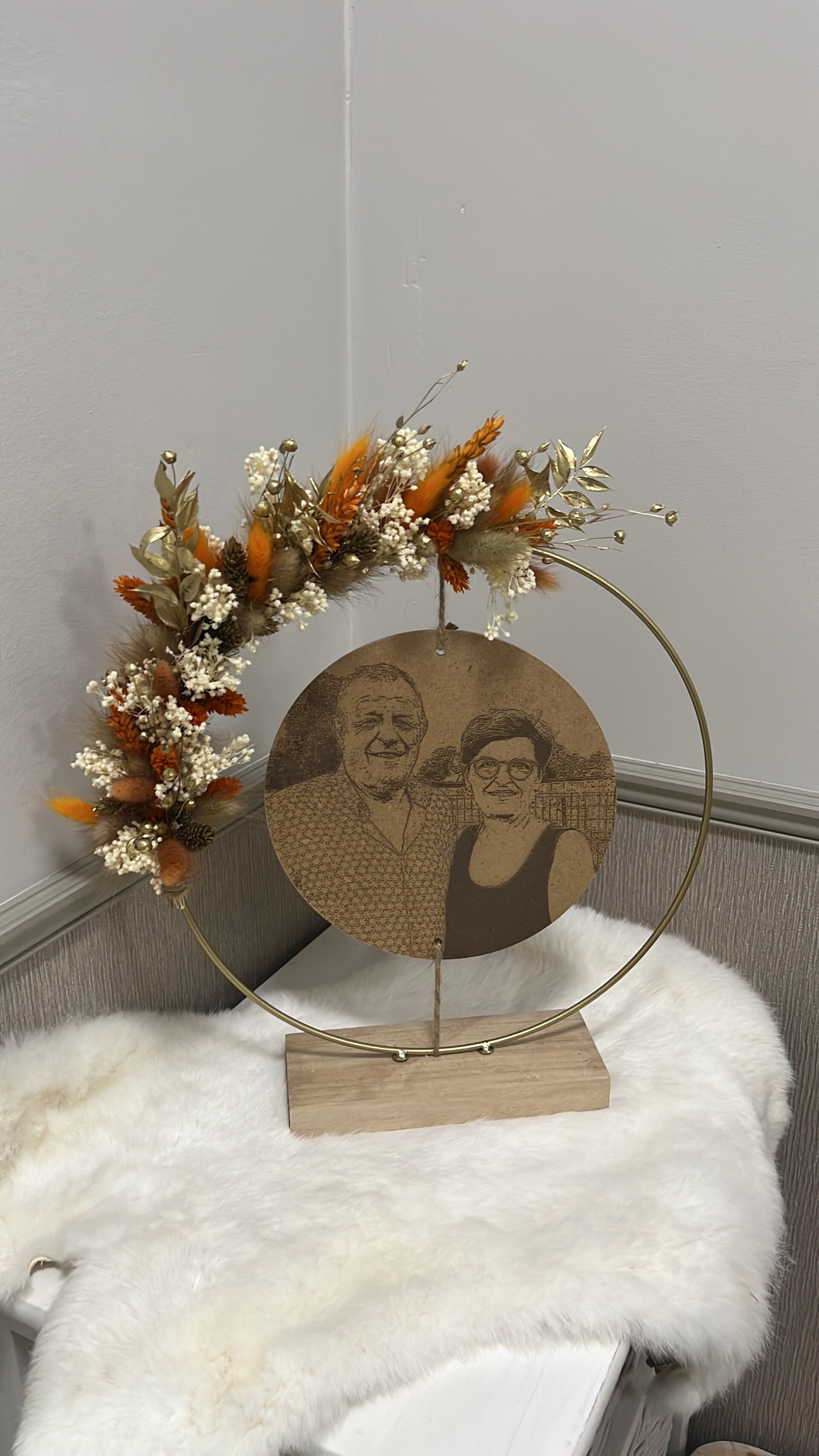 Kies uit de lijst 3 tot 4 kleuren droogbloemen, zo is jouw hoepel volledig naar wens afgewerkt.
