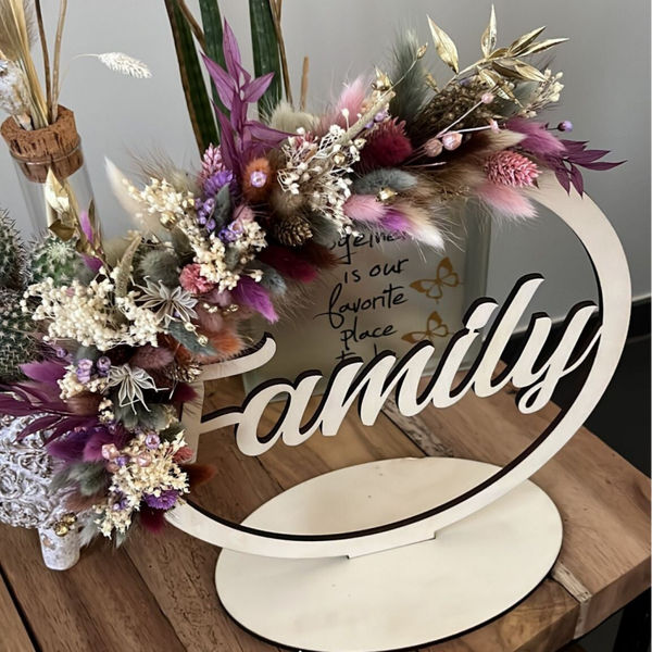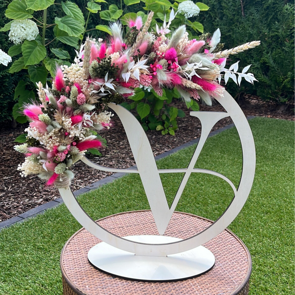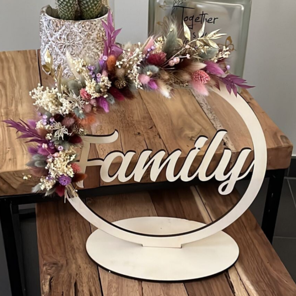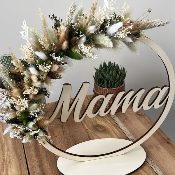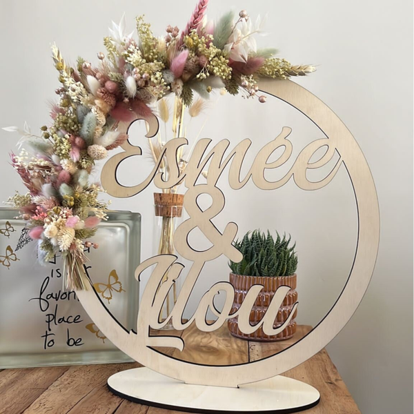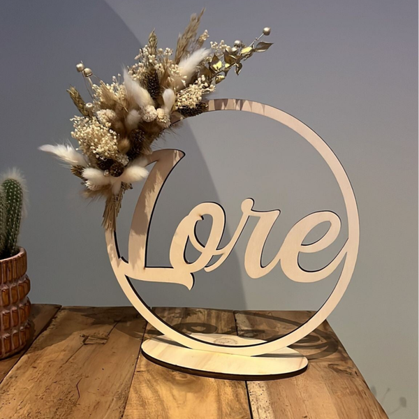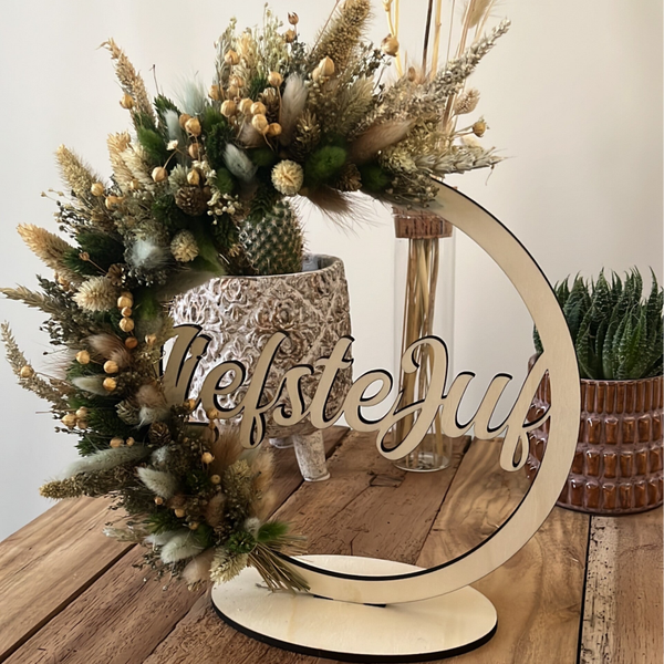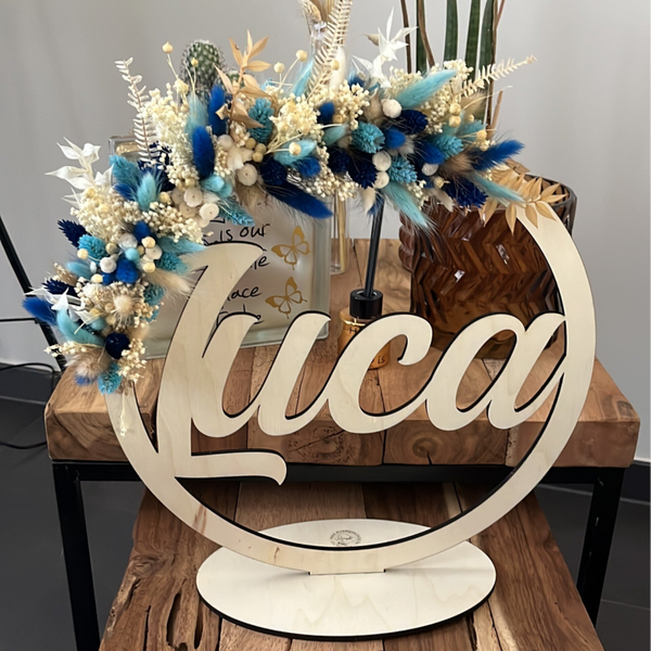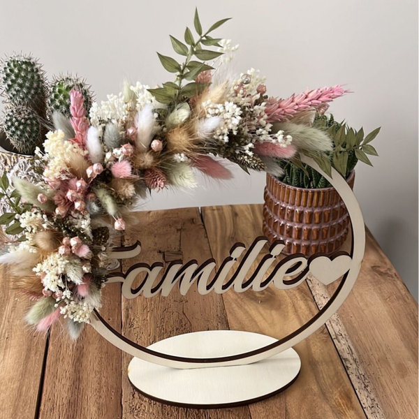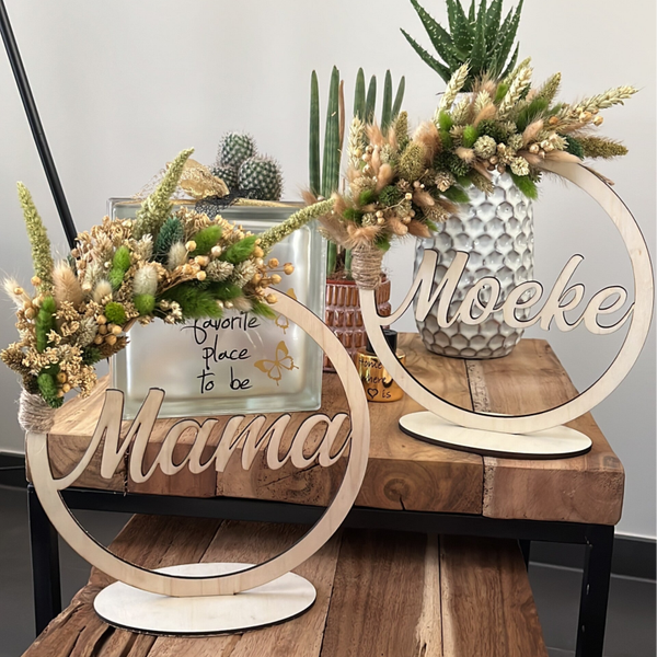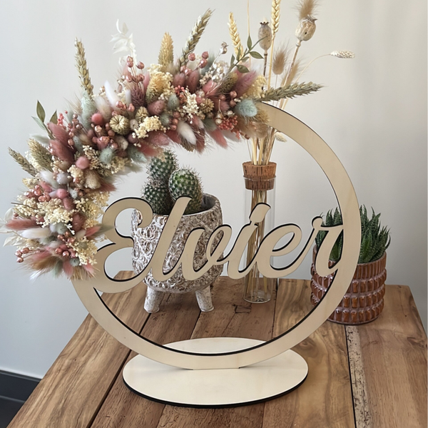 Mooie hoepel met naam afgewerkt met droogbloemen.