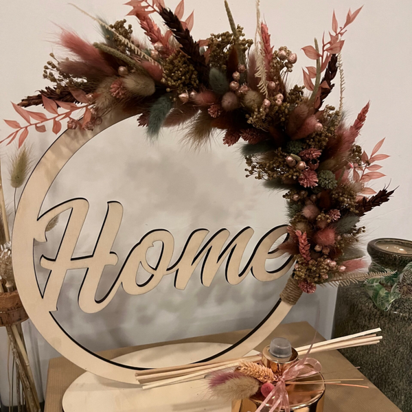 Kies uit de lijst 3 tot 4 kleuren droogbloemen, zo is jouw hoepel volledig naar wens afgewerkt.
