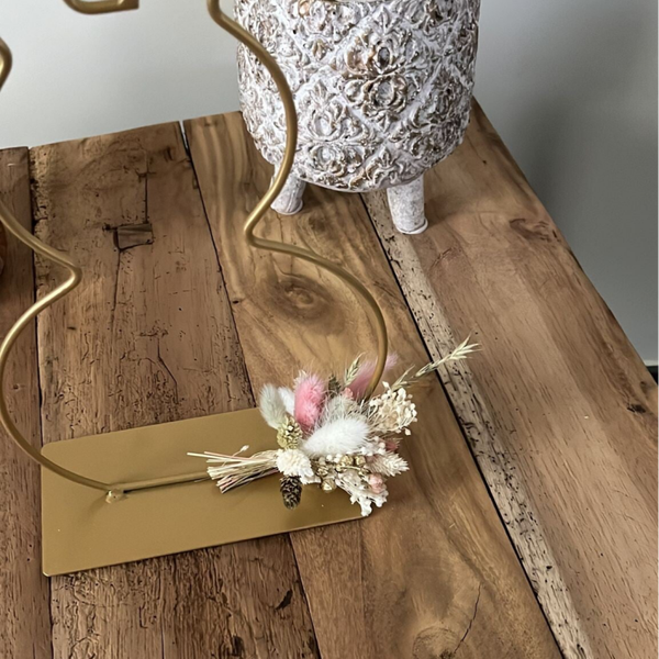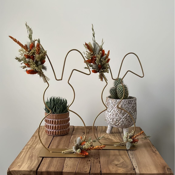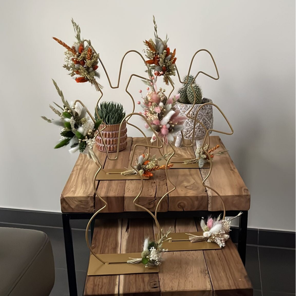 Kies uit de lijst 3 tot 4 kleuren droogbloemen, zo is jouw bunny volledig naar wens afgewerkt.