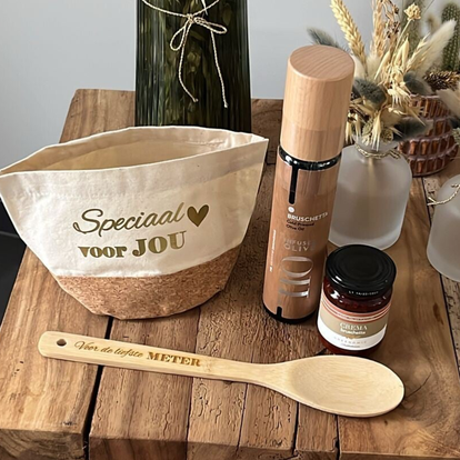 Zou je graag wat willen toevoegen aan een pakket of zelf iets willen samenstellen? Dit kan, gelieve bij opmerkingen te noteren wat samen ingepakt moet worden.